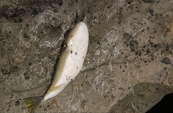 自分の釣りを続けながらお隣の方々の動向をチェックしつつ釣り続けましたが自分含め確認できた釣果は下の1尾のみ。