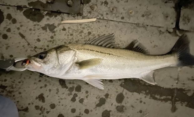 居着きっぽい黒々とした背中ではなく綺麗な銀色個体だったのでどうやら海から上がってきた秋シーバスっぽい。