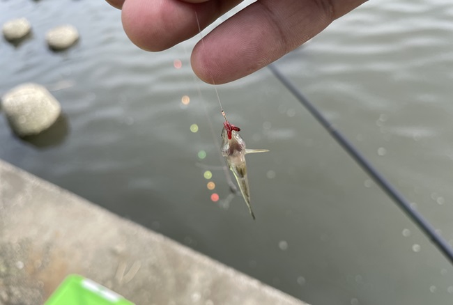 お昼過ぎに到着し1~2時間で10匹くらい釣れればいいかな~などと考えていたが、現実は厳しく唯一釣れたのはチビハゼ2匹のみ。